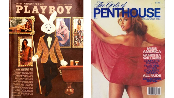 Справа: скандальний випуск «Penthouse» за 1984 рік із 19-річною чорношкірою Міс Америкою Ванессою Вільямс